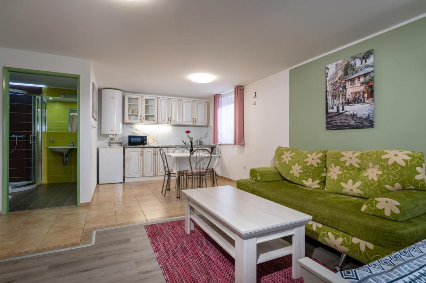 Apartment. Boasting a private entrance, this apartment also includes 1 separate bedroom, 1 bathroom with a shower, a kitchen and a dining area. Guests can make meals in the kitchen that is fitted with a stovetop, a refrigerator, kitchenware and a microwave. The apartment offers a TV with satellite channels, soundproof walls, a seating area, a wardrobe as well as garden views. The unit has 3 beds.