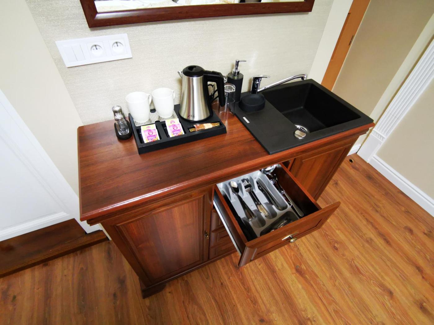 King Studio with Sofa Bed. Providing free toiletries, this studio includes a private bathroom with a shower, a hairdryer and slippers. Guests can make meals in the fully equipped kitchenette that features a refrigerator, kitchenware and a microwave. The air-conditioned studio provides a flat-screen TV with cable channels, a private entrance, a tea and coffee maker, a seating area as well as ancourtyard view. ;
